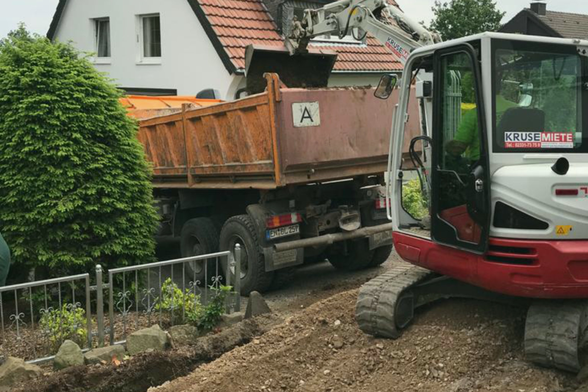 Manchmal kommt man per Hand, mit Hacke und Schaufel einfach nicht weiter und es muss “schweres Gerät” her. Egal ob kleiner oder großer Bagger, Radlader oder Dumper… wir verfügen über ein großartiges Netzwerk und meistern jede Herausforderung.